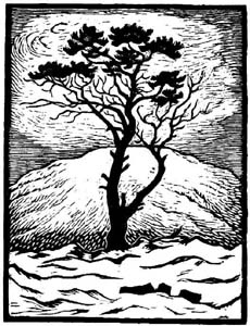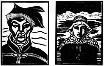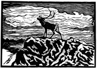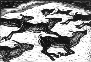 ジョン・アンドレアス・サビオは、ノルウェー北部のサーミの村に生まれ育ちました。小さい頃に、二人の妹、母、そして父をあいついで失い、祖父母のもとに引きとられて成長します。絵の才能を早くから見せていたそうで、小・中学、高校と進み、その頃から町で絵を売るようになります。その後オスロに出て絵を学び、つづいてストックホルム、コペンハーゲンで修業をつづけ、ドイツ滞在の後かねてからの夢の地パリへと向かいます。そしてそこで生涯ただ一度の展覧会を催しています(1936年)。故郷ノルウェーでは生前認められることのなかったサビオですが、死後2年たった1941年に大回顧展がノルウェーで催されます。トナカイ、オオカミ、自然の中の人々など故郷の風景を題材に油絵や木版の作品を多数残しているサビオ。「絵を通して、ぼくの故郷のサーミの人々のことを世の中に知らせたい」という言葉を残して1939年、貧困と病いの中37才の生涯をとじました。