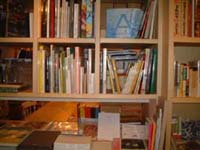 ユトレヒトの本棚には海外まで出向いて手に入れた珍しい本、さまざまなアーティストブック(新刊も古書も)があると思えば、日本語のアート、デザインの本や絵本(昔のものも)、インディペンデントな出版物など、一般の書店ではあまり目にすることのない本が隣あって並んでいます。何か探している本があれば、相談にのってくれますし、著者や版元について、入荷のいきさつなど本の周辺の楽しい話題も聞くことができます。