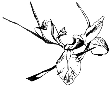 中央シエラの東側は、高地の谷の方に向かって急激に落ち込んでいる。薄暗く列をなす松の帯が走る、四千メートル級の頂上が、前山もなく直接河岸の段丘のところから立ち上がっているのだ。段丘やメサが下っている縁で、断層によって地面が川の窪みの方へ落ち込んでいることがあり、その陥没に沿って行くと、泉か間欠性の湿地を見つけることがある。ここでは植物界は、高度と町の人々の牧草地としての利用によって手が加えられた、湖水庭園のような見映えだ。クレス、青スミレ、キジムシロ、そして柳に囲まれた湿地には、白いニセアスフォデルが生えている。わたしたちが植物の名前づけに際して、あまりに簡単に「ニセ」という言葉を使ってしまうのは確かだ。ニセゼニアオイ、ニセルピナス、というように。アスフォデルは偽というわけでなく、花は小さく、葉っぱばかりが目立つが、天が定めた特徴のすべてを有する真性の百合である。この世のものでない見映えに育つことを表す名前を持ってしかるべき花。メサの草地原産の花には、何エーカーもの広い庭に、満開の季節の春には空色の羽をひらひら舞わせる、青白いアイリスがある。一つ一つの花は、ほっそりとはかない見映えで想像力を刺激するが、草原全体を見渡すと、沙漠の砂地を横切る淡いブルーの蜃気楼の川ようで、天上のものへと気持ちを駆りたてる。まさに詩人の花だと思う。花束には向かないし、牧草地でも厄介者だけれど、それゆえにより愛されることを必要としている。ある日、インディアンのウィニナップが葉っぱの中央から丈夫な繊維を引き抜いて罠をつくるところを見つけた。アイリス畑は、きれいな金色のほとんど無柄のキンポウゲと、這うように茎が伸びる赤っぽいキク科の花に縁どられている。英語を話す子供たちは、いつもキンポウゲの花を手にしているんじゃないか、と思っていた。本来の仲間である小さなカエルと出会わないときは、自然とその次に好きなものに向かい、それを代わりに大事にする。キンポウゲを調べていて、呼び名のせいで愛されている、関係種でない他の四つの花に気づいた。なんと、その呼び名とは牛の糞なのだ。