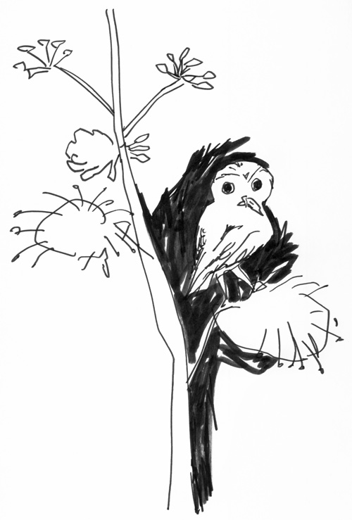 小動物たちがいつ、どれくらいの頻度で泉にやってくるか言いあてるのは難しい。もし春の終りから冬の最初の雨の間に、一匹が一度やって来ただけでも相当の数になると思われ、水の路は確保されるだろう。山かげから黄色味を帯びた朝の光が顔を出す頃に、アナグマが水を飲んでいるのを見たことがある。アナグマは足が濡れるのをきらって、水の浅い場所を探す。ネズミとシマリスは朝も九時をまわってからやって来るのが観察された。泉のそばに住んでいて、一日中立ち働いている大きめのジリス類は、とくに決まった時間に来ることはなく、水を飲みにちょこちょことやって来る。薄曇りの日には、動くもののない間伐をねらって、ハタネズミやノネズミがこっそりと水の路をやって来る。この小さな訪問者たちは、夜に観察するにはあまりに小さくて見つけるのが難しいけれど、ここにたびたび来ていることの証拠に、枯れてカサカサした草の間に何キロもの足跡を残していっている。夜でもごくまれに、灌木の下が草地でなく、砂地が月に白く輝いているような場所で、ネズミたちがせわしなく行ったり来たりして種集めをしているのを見ることができる。でも泉のそばの、ネズミたちの一番のお目付役といえば、サボテンフクロウである。ふわふわ毛皮に斑点模様、地面の巣穴に取り憑いて獲物を漁るこの大喰らいは、日暮れ時に泉めざしてスイッーと飛んできて、バッタやトカゲ、小さくて俊敏な生き物を捕まえて食べ、ノネズミの巣穴に飛び込んで寝込みを襲い、シマリスの巣の入り口では戦闘を繰り広げ、そして一本樹のジュニパーに飛んでいって群がる。もうこのときはフクロウは水をほとんど欲しがらない。夜のメサをさまよい歩いているとき、小川の縁のところで、フクロウたちが馬の脚の下から一斉に舞い上がるのを目にしたけれど、水を口にしたり水浴びしたりしているのを見た覚えがない。泉近くでフクロウが群れをなしているのは、そこで餌を食べていることを意味している。かさこそいう音と小さくホーホーと鳴く声が、弱々しい断末魔の声をたまに挟みながら、泉の一帯で一晩中続く。やって来たフクロウたちが残らず自分たちの山に帰っていったのは、日が登りきった後のこと。もしフクロウのあとをこっそりつけていくなら、脅かして近くの巣穴に追いたてるようなことでもしない限り、丘の斜面まで追っていくことができるだろう。