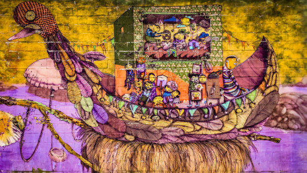 Os Gêmeos Mural by ByteForByte, taken on September 9, 2013 (CreativeCommons-attribution, non-commercial, share alike)