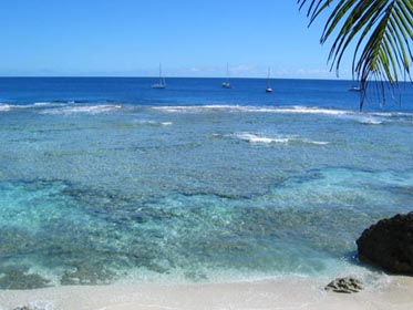 So, having been to Niue, I must admit that it is one of the most magical and beautiful islands we have been to. Fortunate for us we had good weather almost the whole time we were there, light winds and sunshine. The locals are incredibly nice. They would always stop and pick us up if we were walking regardless of whether or not our thumbs were out. The people I met there were healthy and happy and friendly. They must have life figured out there, I thought. But, as we toured the island on our rented motorcycle we saw many abandoned houses, even complete towns abandoned, it was like driving through a ghost town. I'm not sure why they left, if I was a detective, had more time or really, really cared I would get down to the bottom of it. Brad and I did some camping. We rented a motorcycle and cruised around the island, taking turns driving. I have not driven a bike in a long time. It felt nice to drive on empty, well paved roads, lined on one side by dense forest on the other a rugged coast, with my big manly husband behind me, our backpack and sleeping strapped to the back of the bike. We were ready for anything. What we did find was the best little cafe, ever. Washaway Cafe run by Willie. He had the place set up on the honest system. People poured there own drinks, paid for them in the cash register and took their own change. Meanwhile, Willie was cooking up some killer Mahi Mahi. We met this crazy salty dog there, who had recently been bit by a shark while snorkeling at Beverage Reef (a lagoon formed by a reef in the middle of the great blue ocean, surrounded by nothing but water). The story was sketchy and we cant be sure if he had tried to stab the shark first, or the shark attacked him first. From my limited experience with sharks, it seems unlikely that this type of shark would make an unprovoked attack. Anyway after having a few beers with this pirate and his concubine we camped out on the beach. One strange phenomon which happens while you are living on a boat is that you equilibrium gets changed and your body starts to compensate for the constant sway of the motion. The night, as I slept on the firm ground I would wake up swaying, the tent was moving to me and I could not sleep well. The next couple of days we spent exploring the beautiful island of Niue. It is the worlds largest atoll island. And off almost every turn off there is a magical gem to be found. I can barely describe it with words, its was like Carlsbad Caverns meets Humboldt county, but its warm and in the middle of the pacific. Nevermind, I cant describe it, look at the pictures on the web site, if you have time. Whether its caves of stalagtites and stalagmites which open to the blue of the sea, fresh water caves to swim in, an oasis of white sand beach and palm tress surrounded by jagged and harsh rock or dense jungle which reminds you of the power of life. This place made me feel close to God, close to life, it reminded me that we all share a life force and that death is part of that force. The life that rises from death is so evident there, with the smell of both rising into the air, entering through your nose and filling your soul. I wish the struggle to know life and god was this easy all the time.