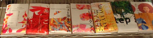 新刊「籠女」をいれて本は5種類ですが、ブックジャケットの方はデザインとカラーのたくさんのヴァリエーションがあります。元の本が真っ白な紙にモノクロームのインクというかなりストイックな装幀だけに、カラージャケットとの組み合わせはなかなかショッキングです。